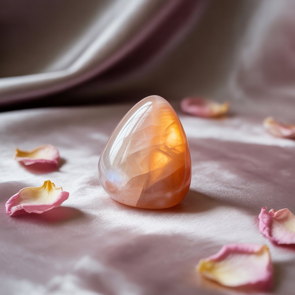 - 피치 문스톤은 감성 회복, 마음의 안정, 자기 수용, 감정 조절과 관련된 크리스털 힐링에서 많이 사용됩니다.